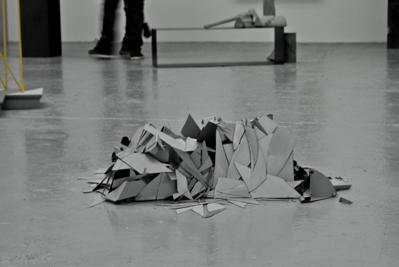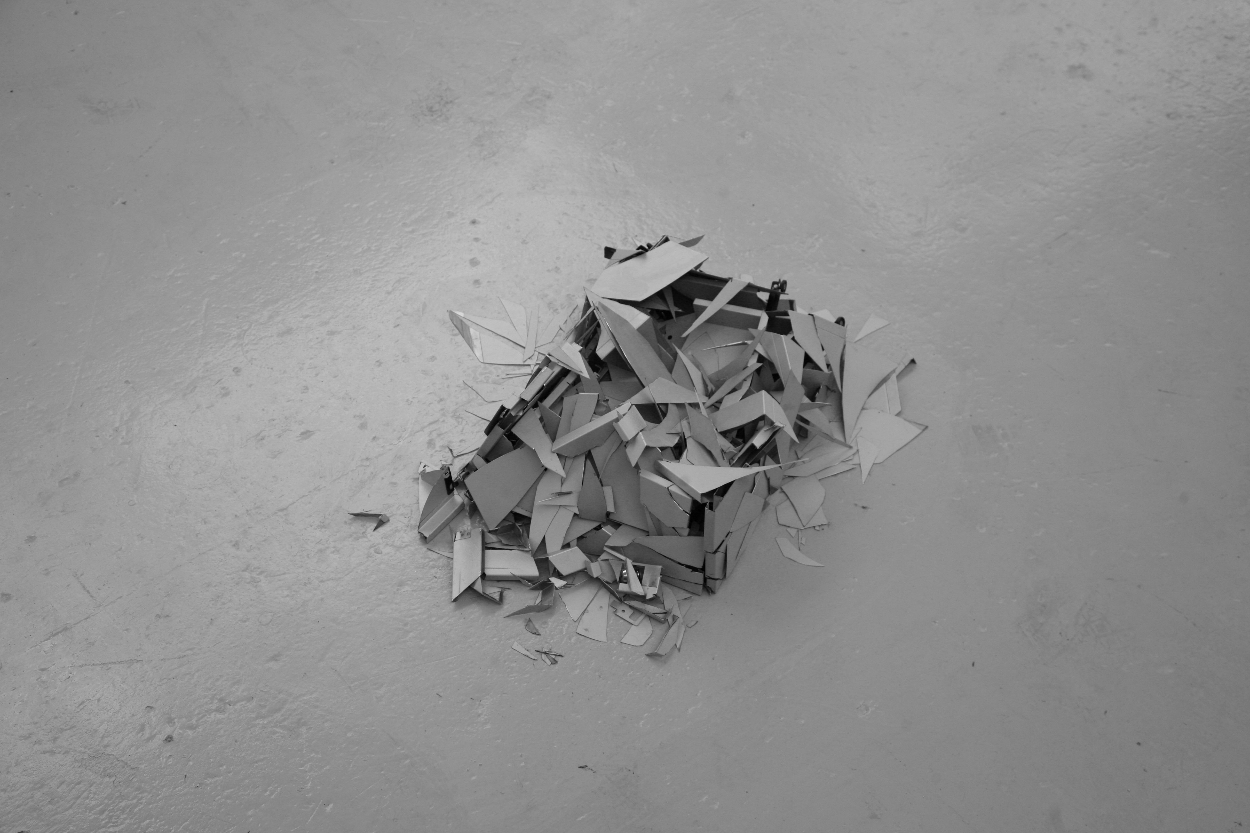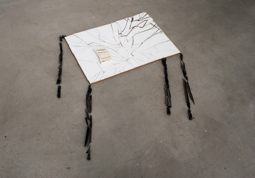 - I'll describe the place that's unimportant (desk), laminated mdf, steel, paper, 2014